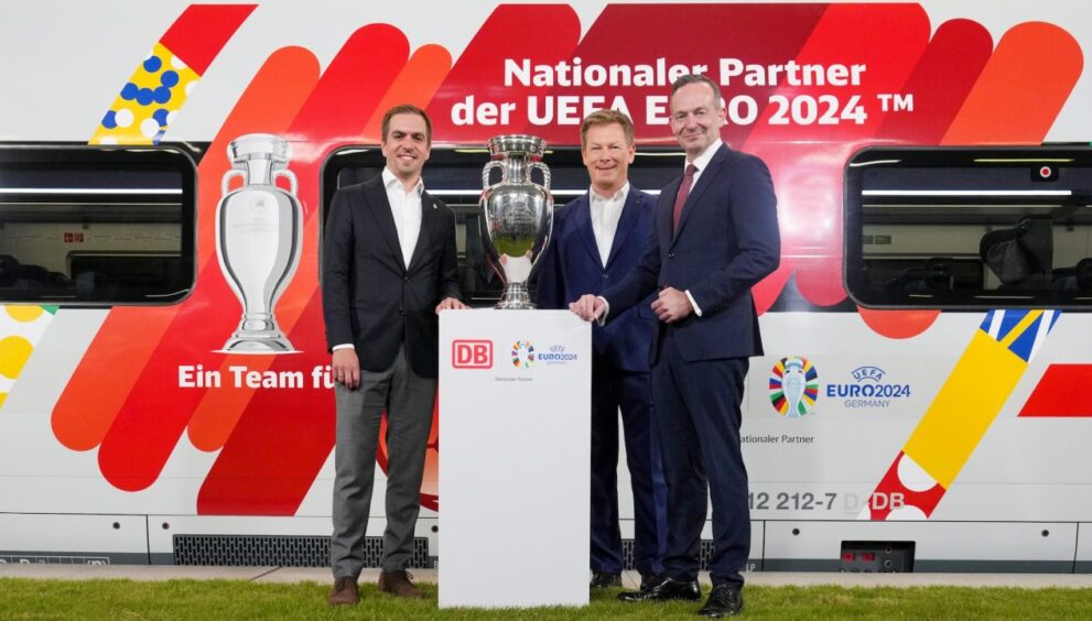 Le partenariat a été présenté à la gare centrale de Berlin par Richard Lutz, PDG de la Deutsche Bahn, Volker Wissing, ministre fédéral allemand des transports, et Philipp Lahm, directeur du tournoi de l’UEFA EURO 2024, avec en toile de fond un train ICE spécialement conçu pour l’événement.