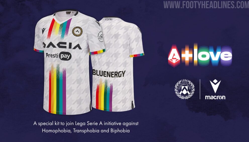 Le Friulani a annoncé le maillot unique pour coïncider avec la campagne A + LOVE de la Lega Serie A, qui se déroule pendant la journée 36 de la saison, célébrant la Journée internationale contre l’homophobie, la biphobie et la transphobie le 17 mai.